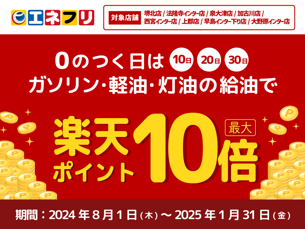 毎月0のつく日は楽天ポイント10倍 実施のお知らせ(8店舗限定)