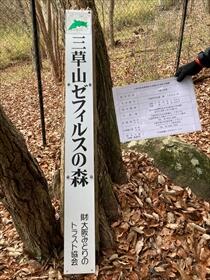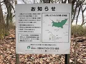 この活動を通じて、三草山にあるゼフィルスの森に設置されている、保全地域および現在地を示す案内看板が経年劣化していることを知りました。そこで、トラスト協会と共同で新しく看板を作成・設置することにいたしました。