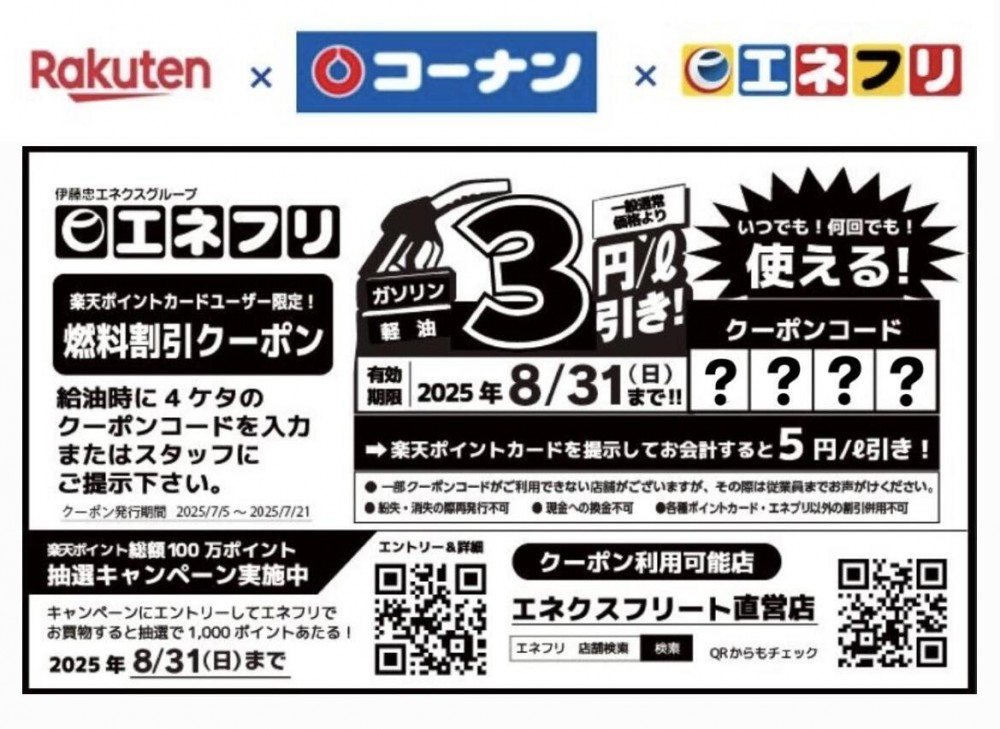 →対象者には、燃料割引クーポン(コード付き)レシートが印字されます