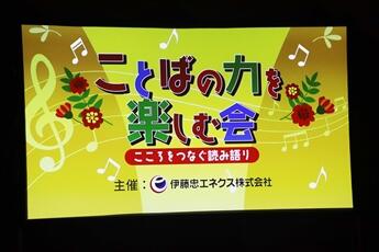 このイベントは、伊藤忠エネクスが東日本大震災で被災された方々を「ことば」の力で元気づけることを目的として2014年に開始した、プロの方々による朗読および音楽のコラボレーションイベントです。現在は全国で開催しており、本公演には元NHKアナウンサーの山根基世さん、当地大阪府ご出身の元TBSアナウンサーの進藤晶子さん、お隣京都府ご出身の元NHKアナウンサー村上信夫さんが出演されました。