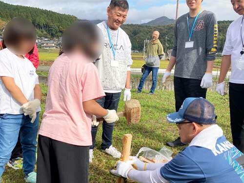 公益財団法人大阪みどりのトラスト協会および能勢みどりすとクラブの皆さまにご協力いただき、三草山ハイキングやサトイモの収穫体験、フクロウの巣箱作りの見学、またカレーの調理に使うための薪を割るといった里山ならではの体験ができるプログラムを用意しました。
