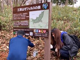 この活動を通じて、三草山にあるゼフィルスの森に設置されている、保全地域および現在地を示す案内看板が経年劣化していることを知りました。そこで、トラスト協会と共同で新しく看板を作成・設置することにいたしました。