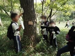 当日は大阪みどりのトラスト協会の職員さまおよび、地元の保全活動団体「能勢みどりすとクラブ」の皆さまのご協力の下、三草山ゼフィルスの森をハイキングしながら、子どもたちと一緒に樹名板の設置と草木の手入れを行いました。