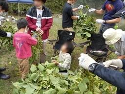 活動終了後には、全員でバーベキューを行った他、能勢みどりすとクラブの会員さまのご厚意で、枝豆の収穫・さや取りをし、穫れたての枝豆を味わいました。また、自分で集めたお気に入りのドングリでコマ作りなどのクラフト体験も行いました。最後には、能勢みどりすとクラブの皆さまと当社からお土産として、能勢町のお米やさつまいもなどをお渡しし、子どもたちに喜んでいただきました。