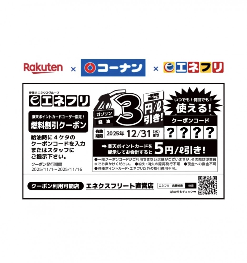 【11/1から】コーナンでお買い物するだけで給油がお得になるかも⁉